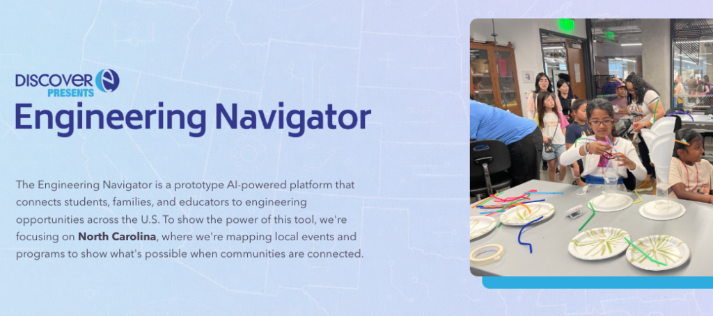 With funding from UEF, I’ve helped spearhead DiscoverE’s cross-organizational effort, the Engineering Navigator, an AI-enhanced scraper and search bot that collects and shares PreK-20 engineering education opportunities with students, teachers, and parents.